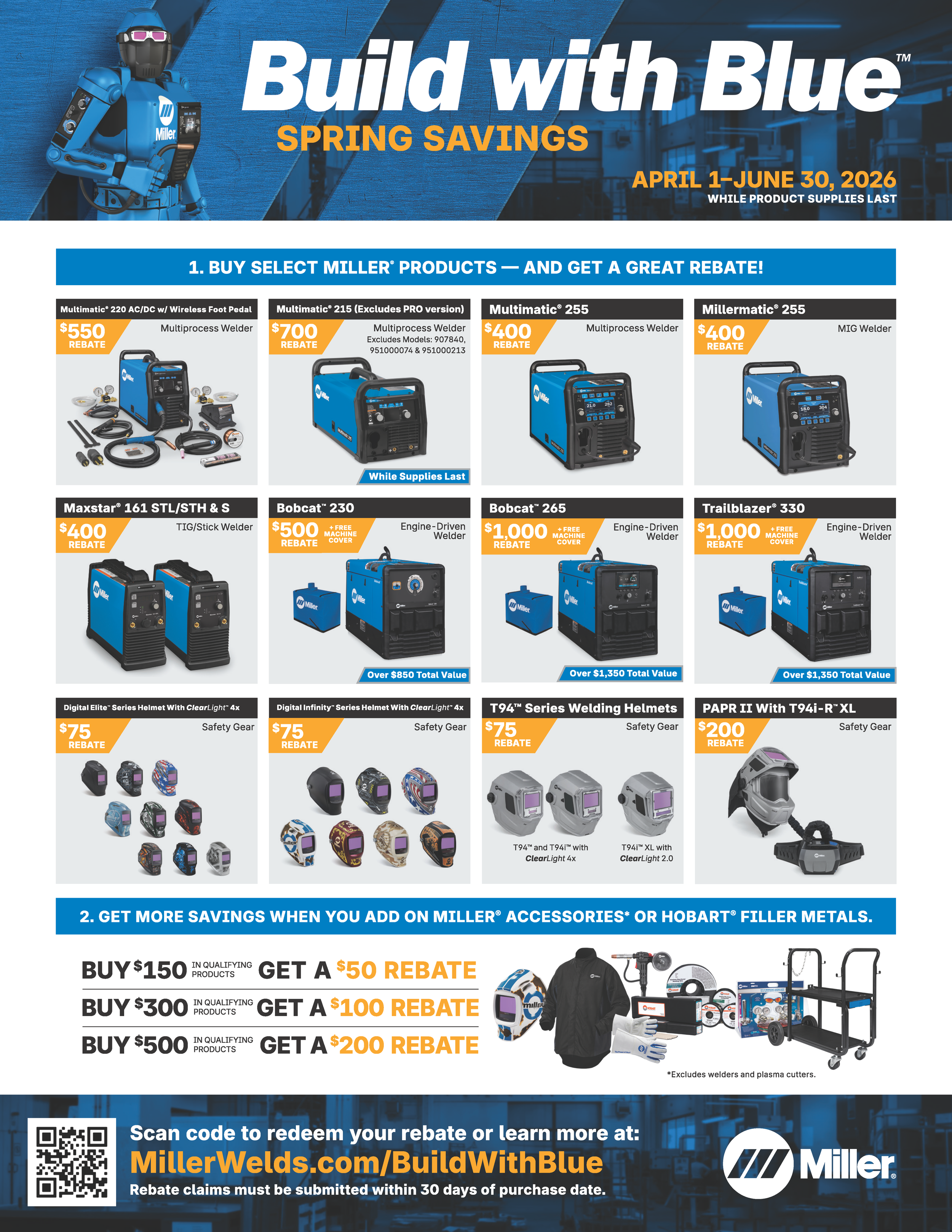 Meet the new Multimatic 215 PRO, a multiprocess welder designed to fuel your multi-hustle. With steadfast Miller reliability and an array of ease-of-use features, you’ll be fully equipped to handle every job with excellence. Because you’re a doer, and we built it for you.