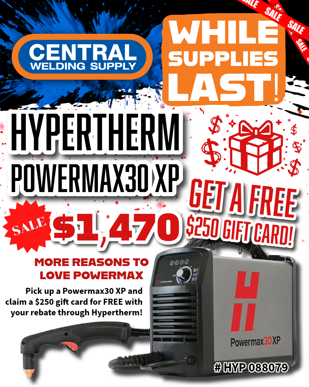 Current In Store Specials Buy Red Save Green Build With Blue Winter Savings Regulator Trade in Special PowerMax 30 SpillTech ESAB Burn and Earn NEW! Millermatic 211 PRO Hypertherm Spill Bully Kits Safety Flyer Hobart Large Equipment Deals Pferd Start Line Wearables Safety Studson Safety
